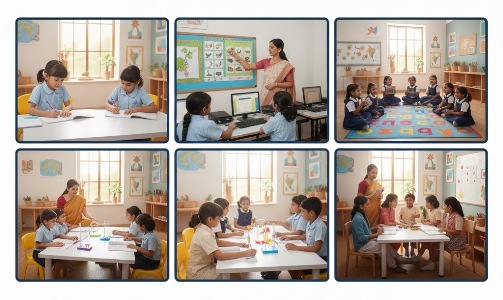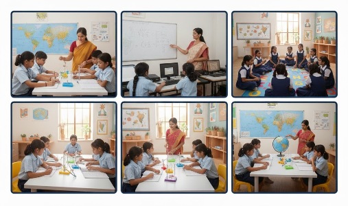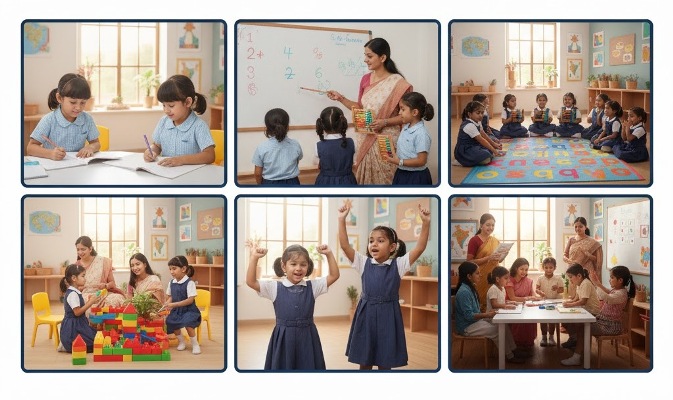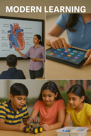 Advanced academics with Science, Maths, SST & Digital Literacy.